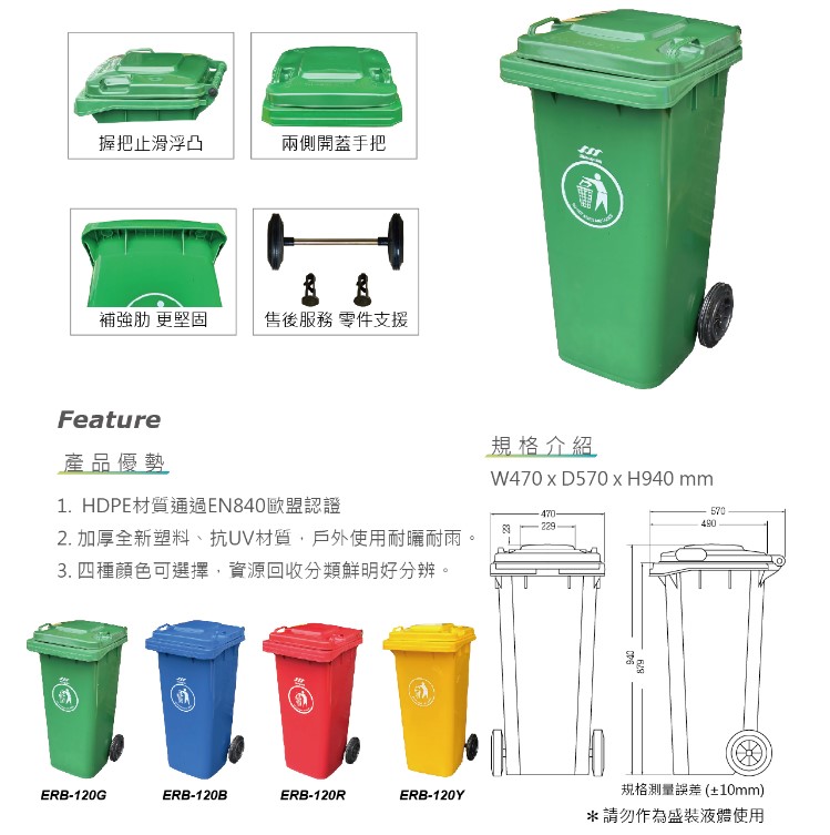 垃圾桶系列 經濟型二輪拖桶(120公升)ERB-120Y