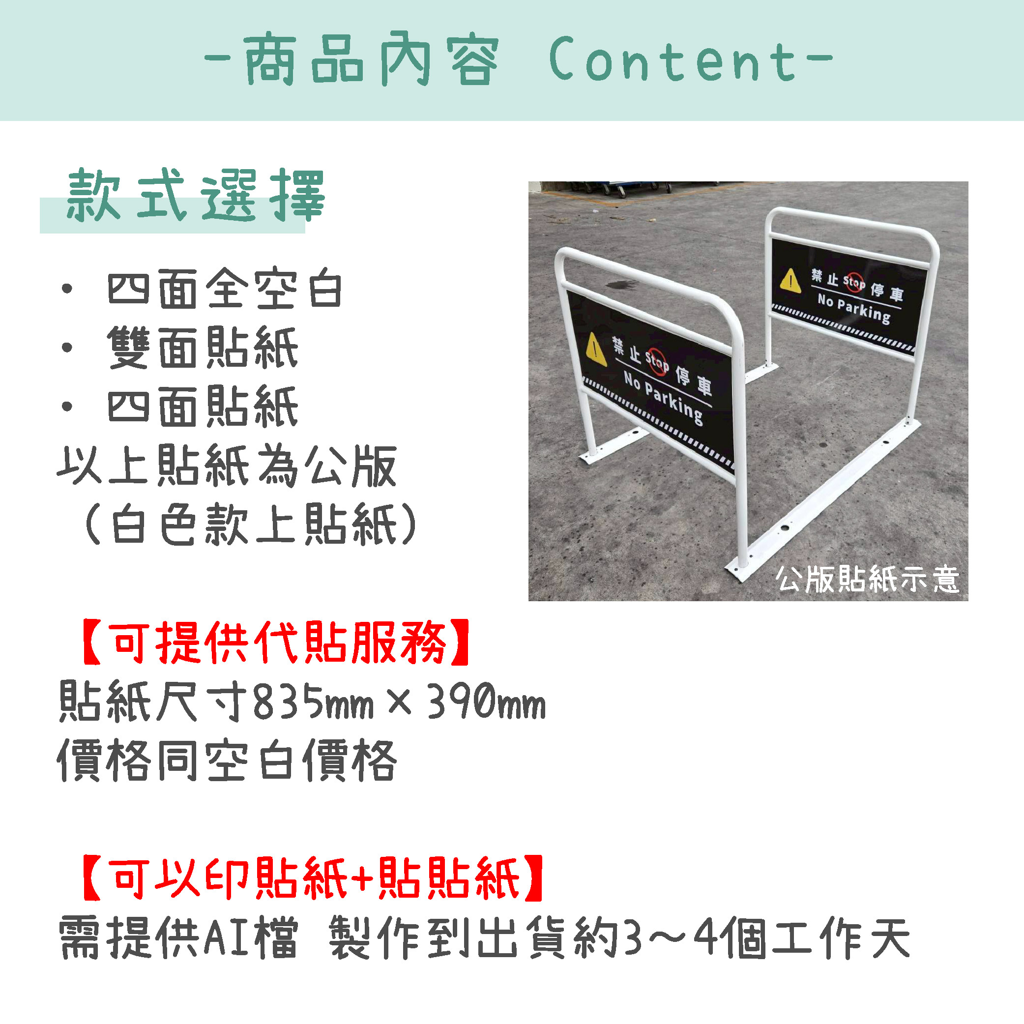 備註:可提供代貼紙服務