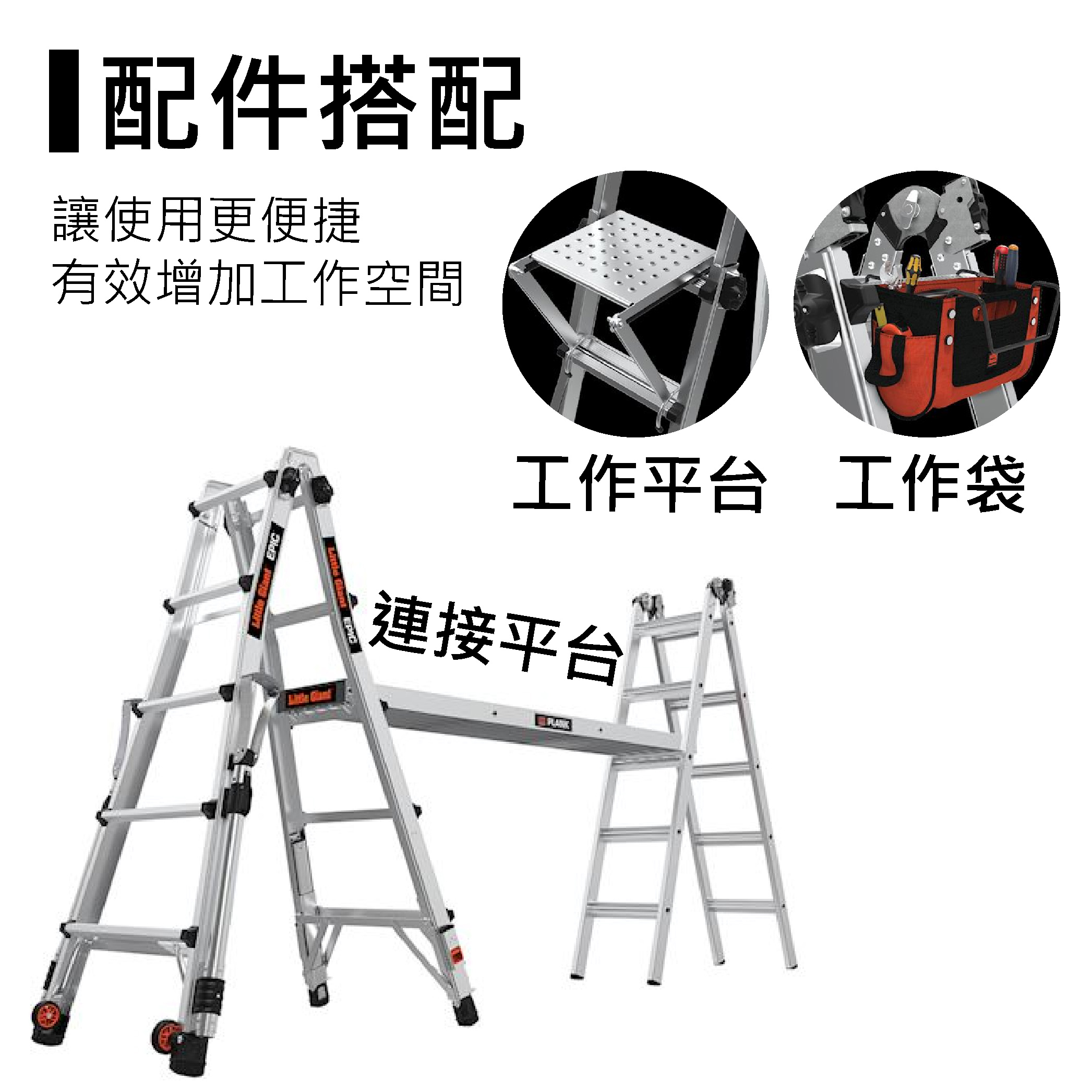 符合ANSI IA型 136KG 安全標準,航太全鋁材質製成的多功能工作梯 (含自動腳)
