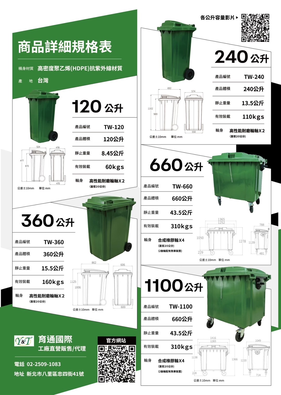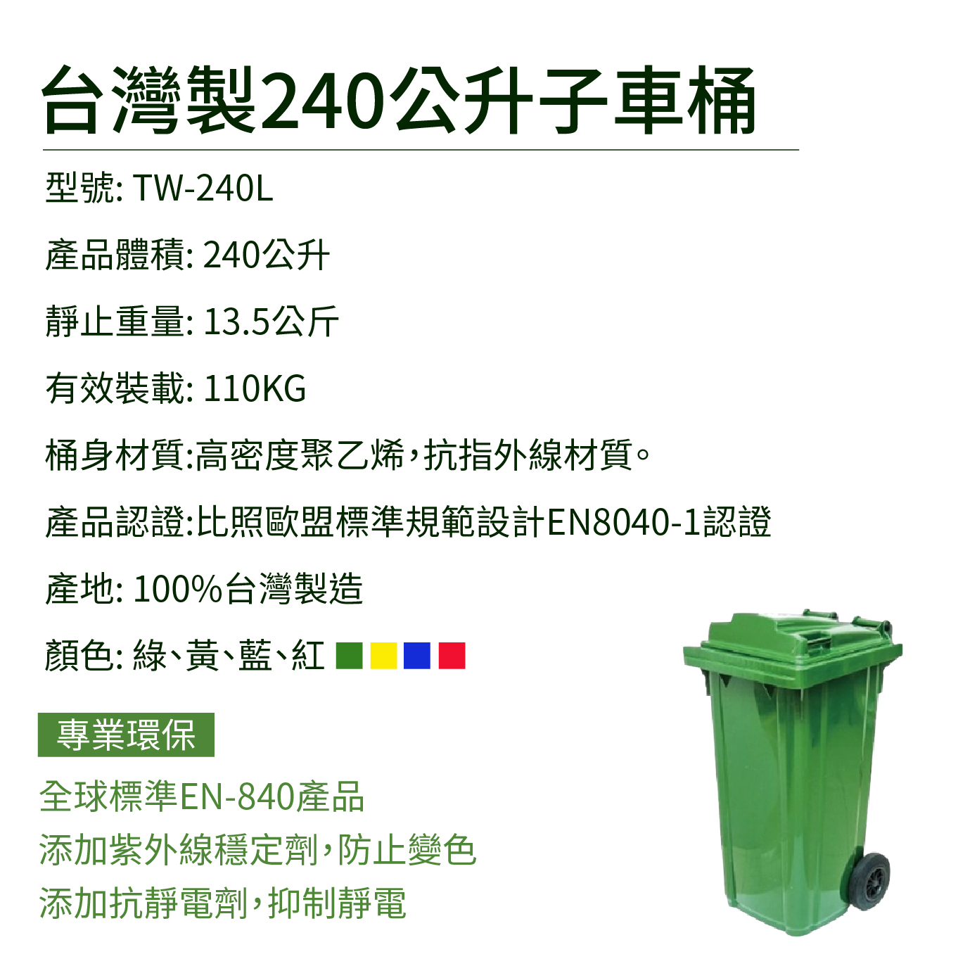 桶身材質:高密度聚乙烯,抗指外線材質。