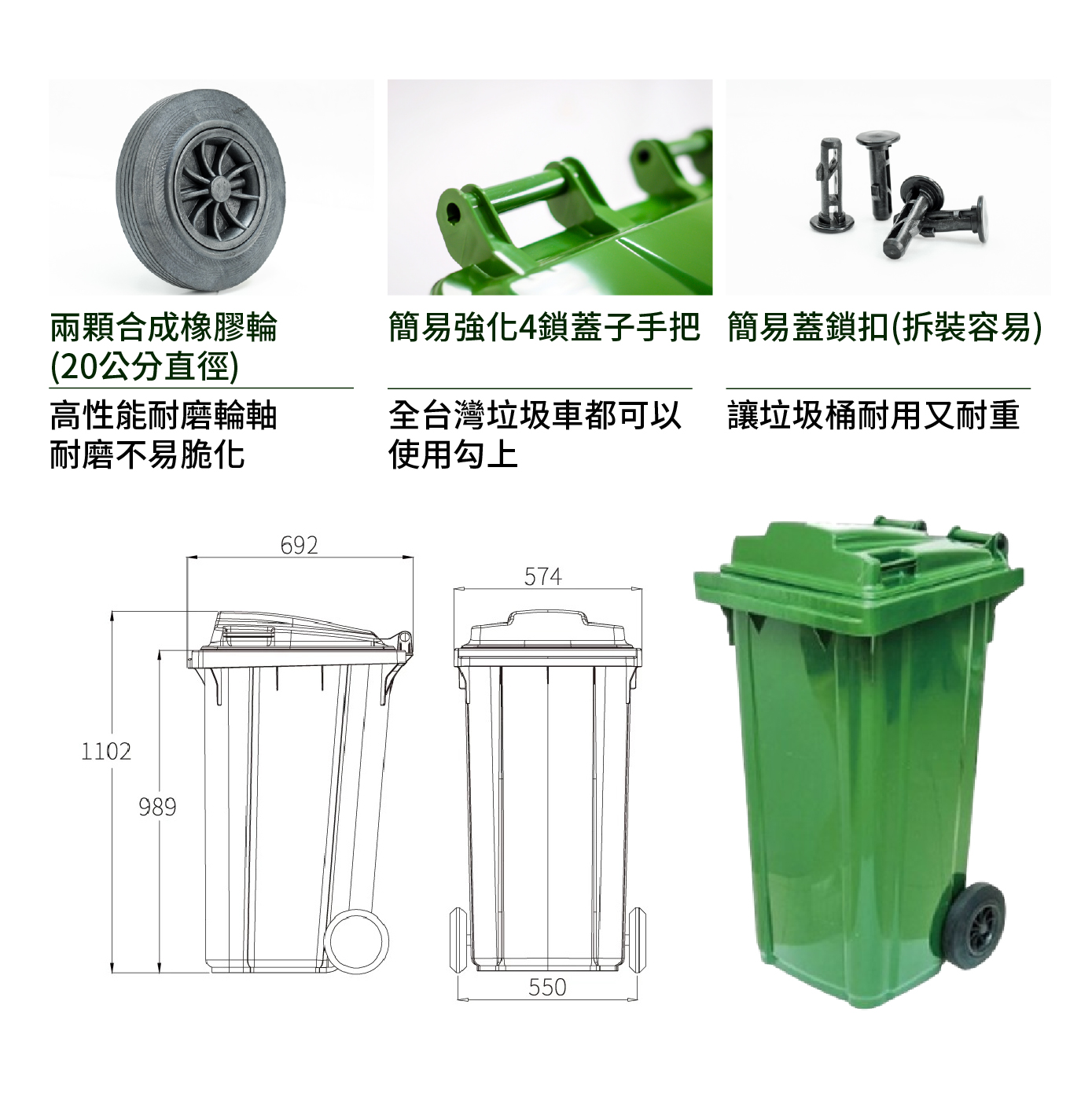 簡易強化4鎖蓋子手把:全台灣垃圾車都可以使用勾上
