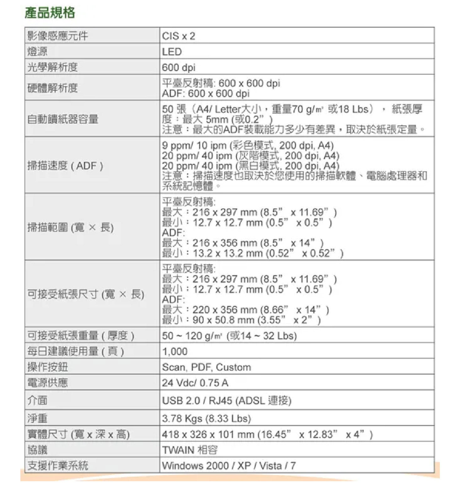 ▪ 網路型掃瞄器,掃描速度每分鐘高達20 ppm / 40 ipm