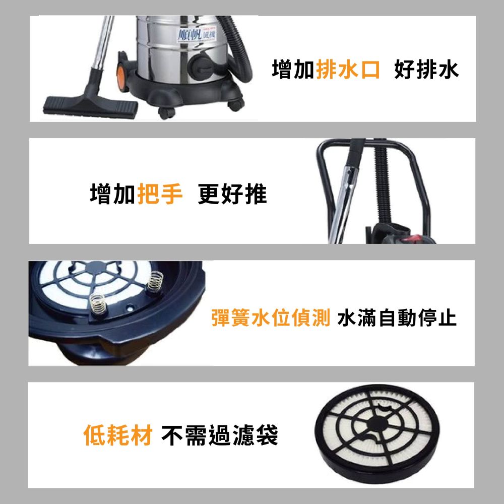 ◎ 多用途,可乾吸、濕吸、吹塵一次搞定,帶有扶手,方便移動。