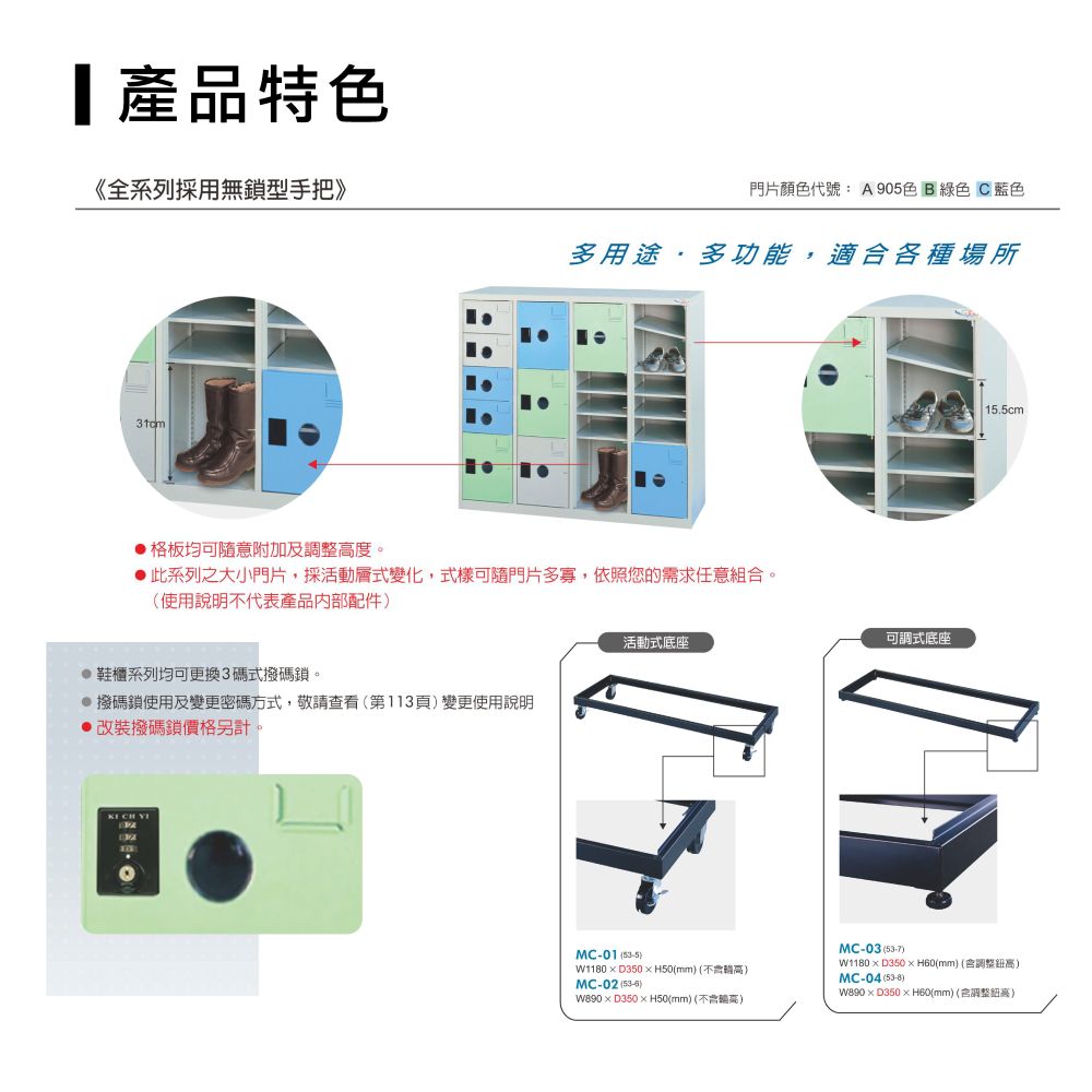 ☆ 三種顏色門板供選擇,也可混搭;做顏色區分管理。