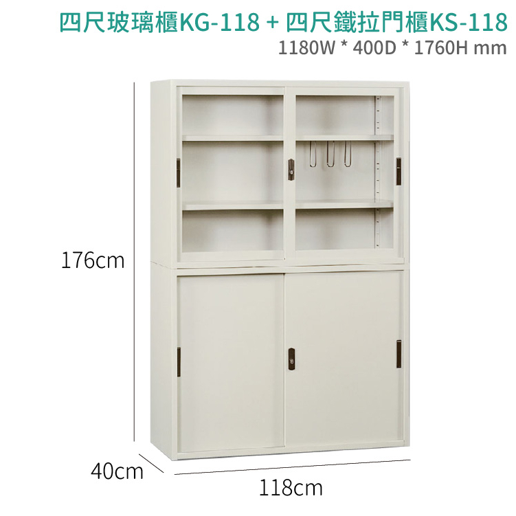 KG-118+KS-118 4*3尺玻璃拉門(上層) + 4*3尺鐵櫃拉門(下層)