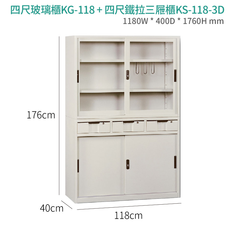 KG-118+KS-118-3D 4*3尺玻璃拉門(上層) + 4*3尺中三抽(下層)
