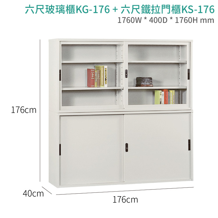 KG-176+KS-176 6*3尺玻璃拉門(上層) + 6*3尺鐵櫃拉門(下層)